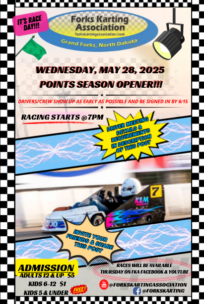 IT'S RACE DAY AT FORKS KARTING SPEEDWAY FOR MAY 28, 2025!!!!