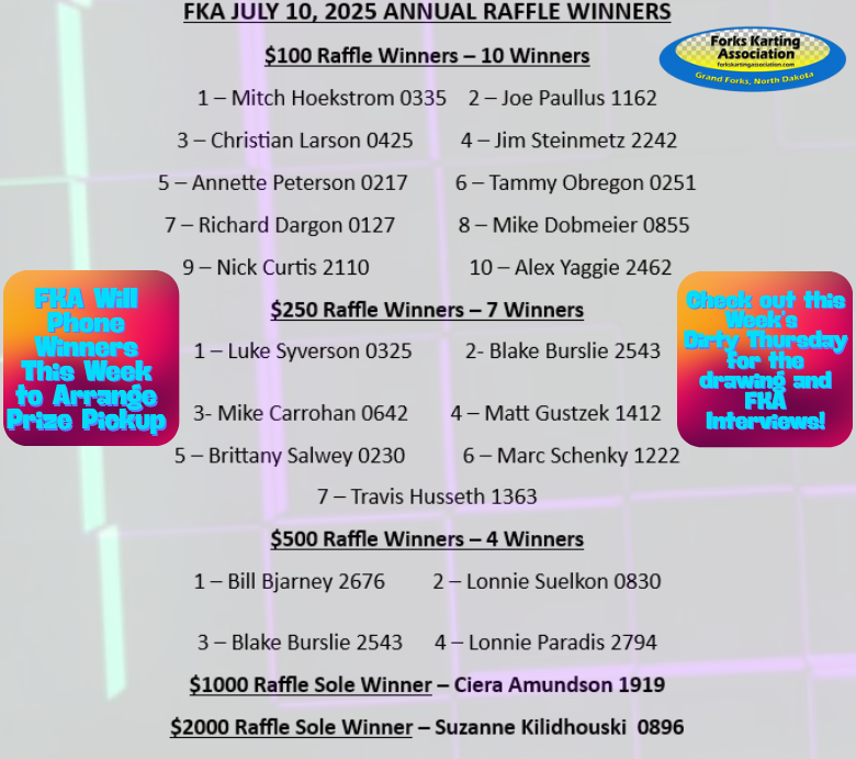 FKA WILL PHONE WINNERS THIS WEEK TO ARRANGE PRIZE PICK UP