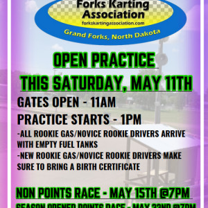 OPEN PRACTICE WILL BE ON SATURDAY, MAY 11th WITH A TIME To BE ANNOUNCED!